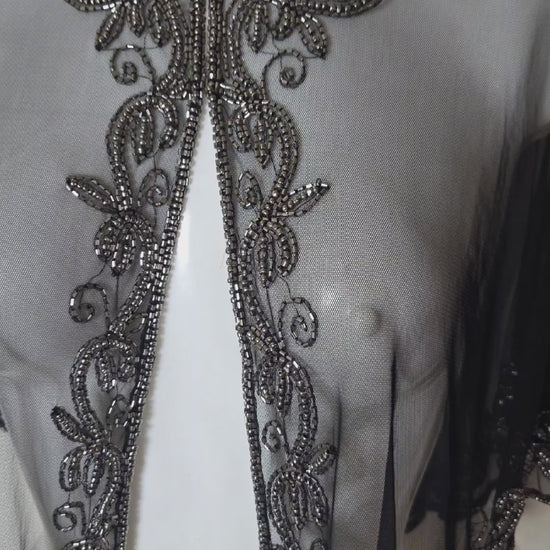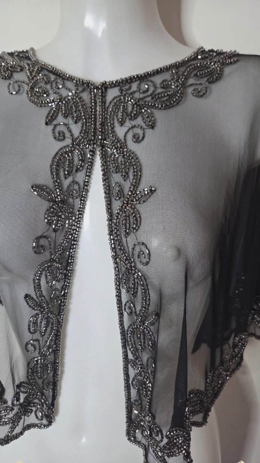 Black Sequin Capelet | 1920s Art Deco Beaded Poncho Evening Cover-Up | One Size